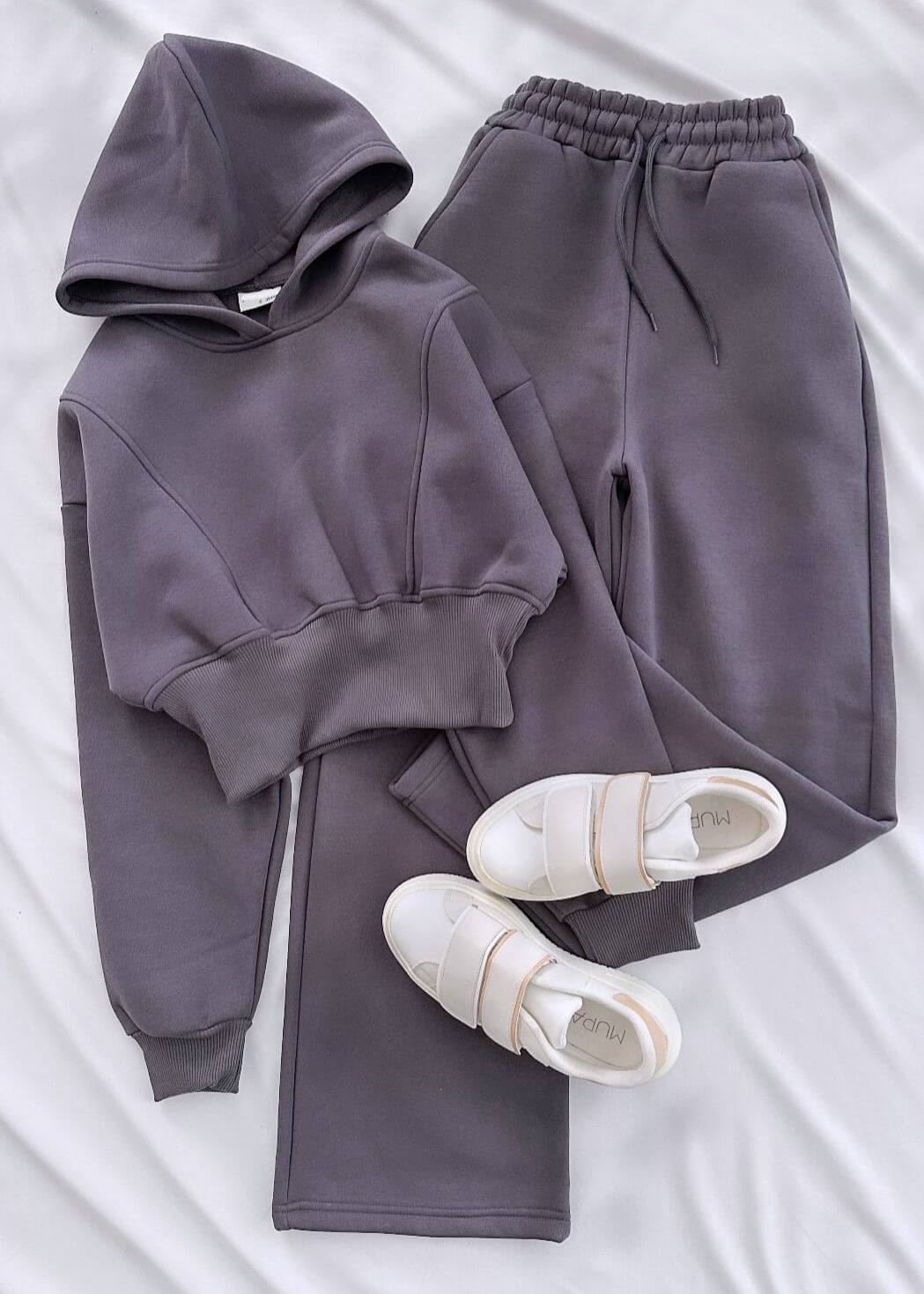 Antrasit Korse Bel Detay 3 İplik Eşofman Takımı