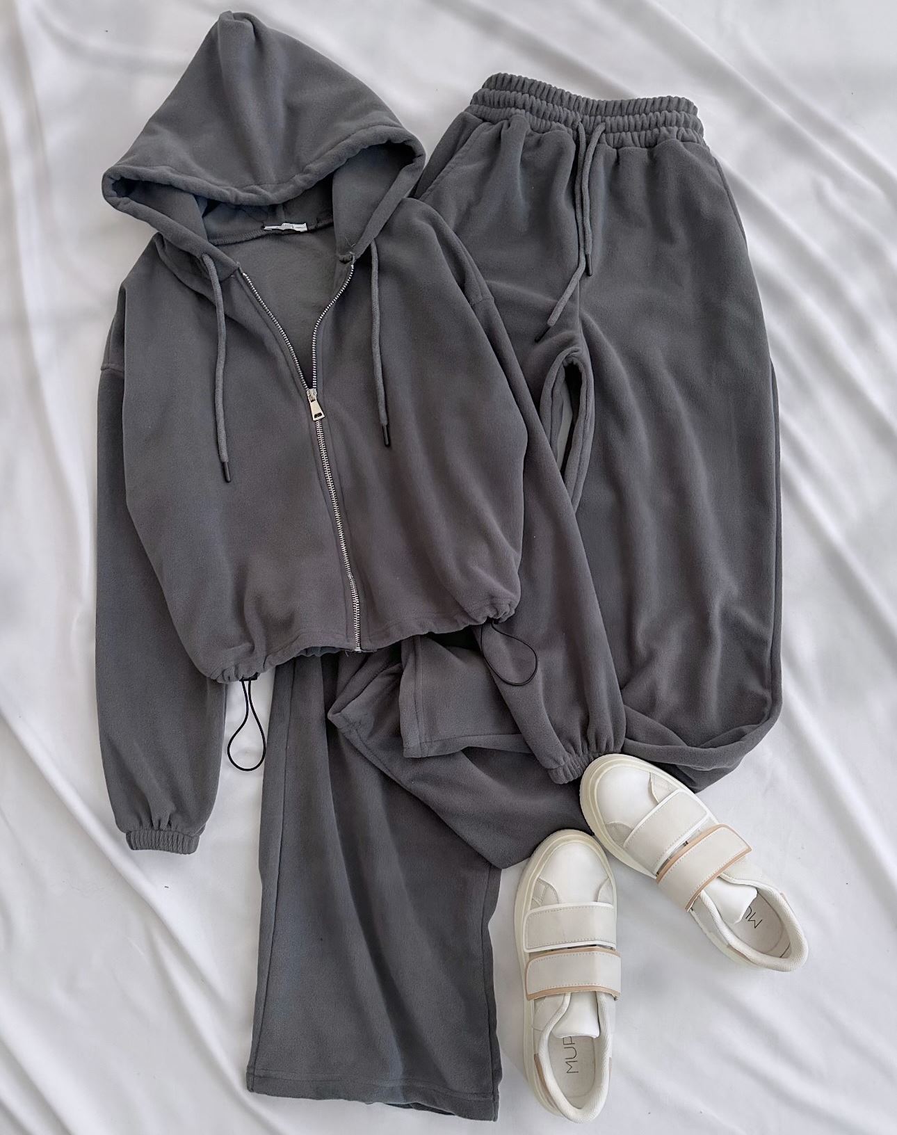 Siyah 3 İplik Kalın Kapüşonlu Eşofman Takımı