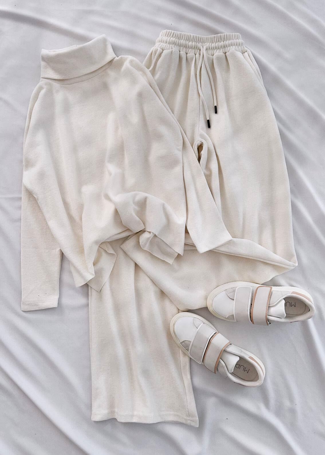 Beyaz Kapüşonlu 3 İplik Crop Ceket