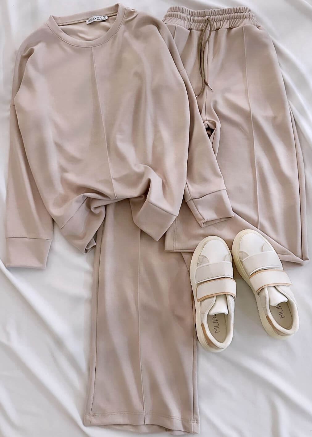 Antrasit Uzun Kol Düğme Detay V Bluz Pantolon Takım