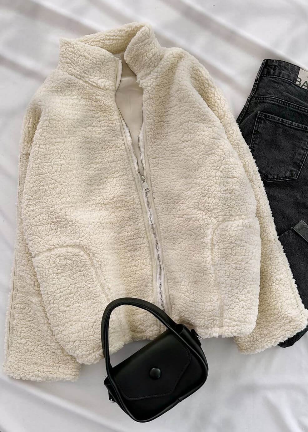 Siyah Kalp Detay Astarlı Peluş Ceket