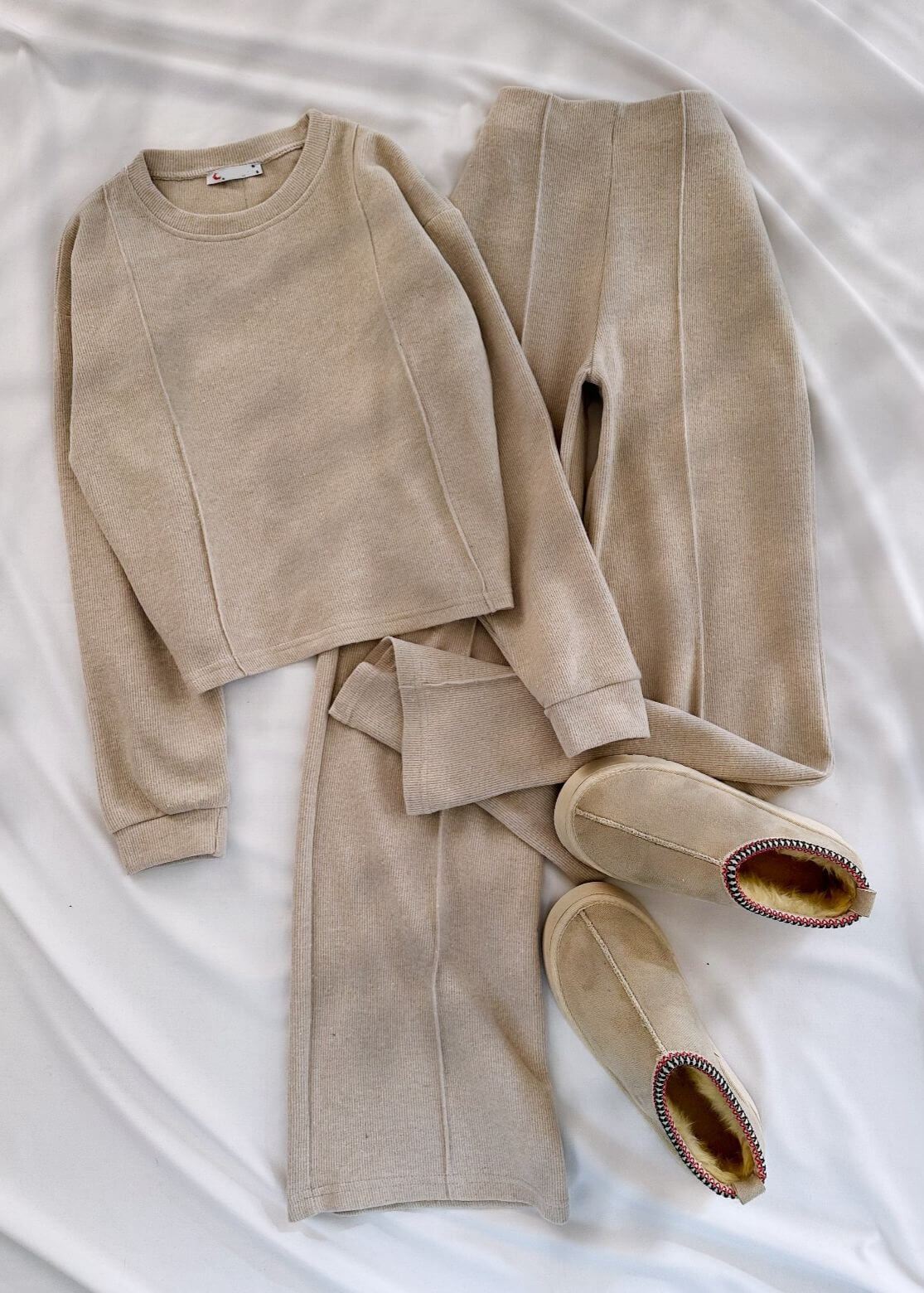 Kahverengi Oysh V Kapüşonlu Eşofman Takımı