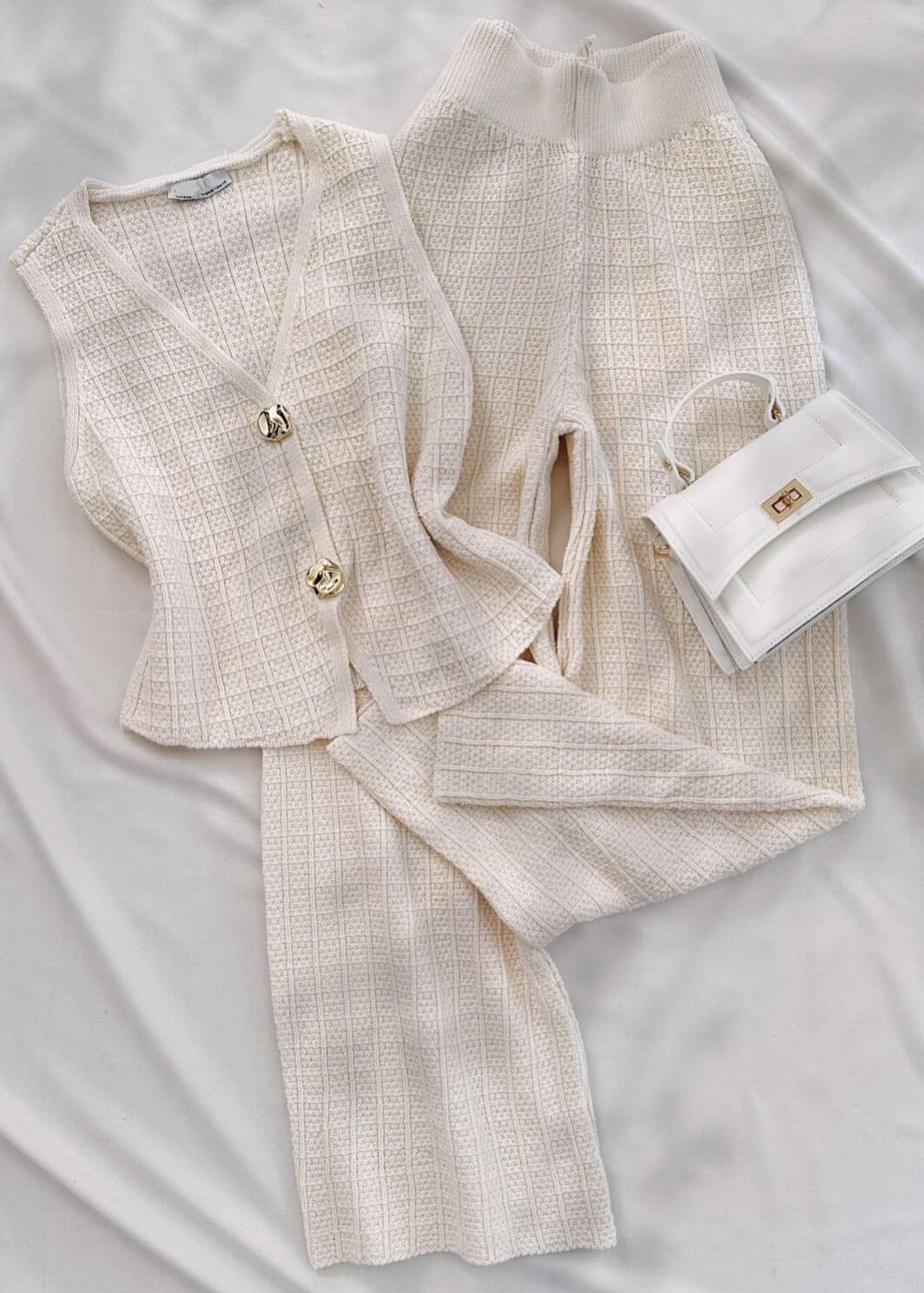 Bej Triko Yelek Takım