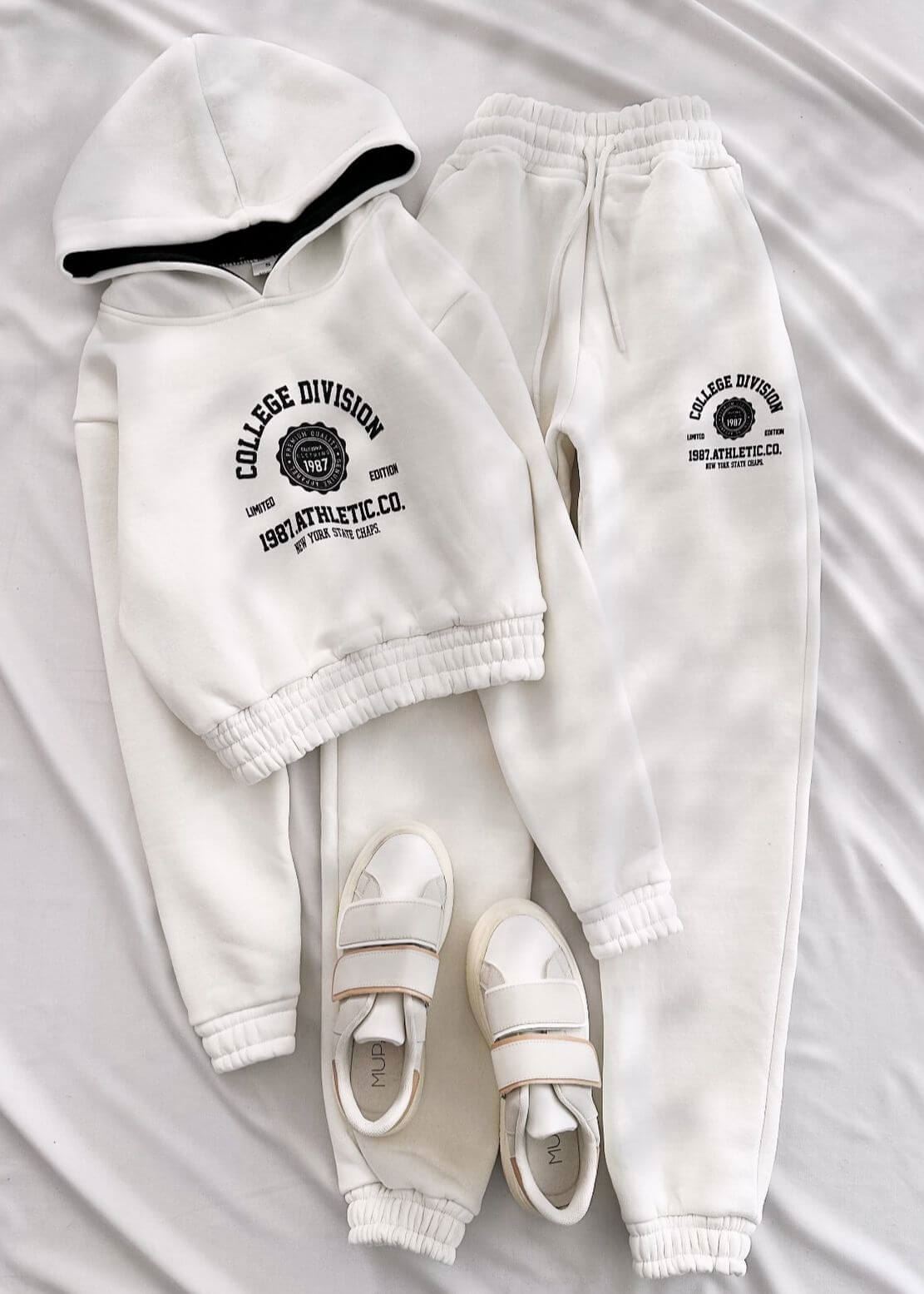Beyaz Athletic 3 İplik Eşofman Takımı