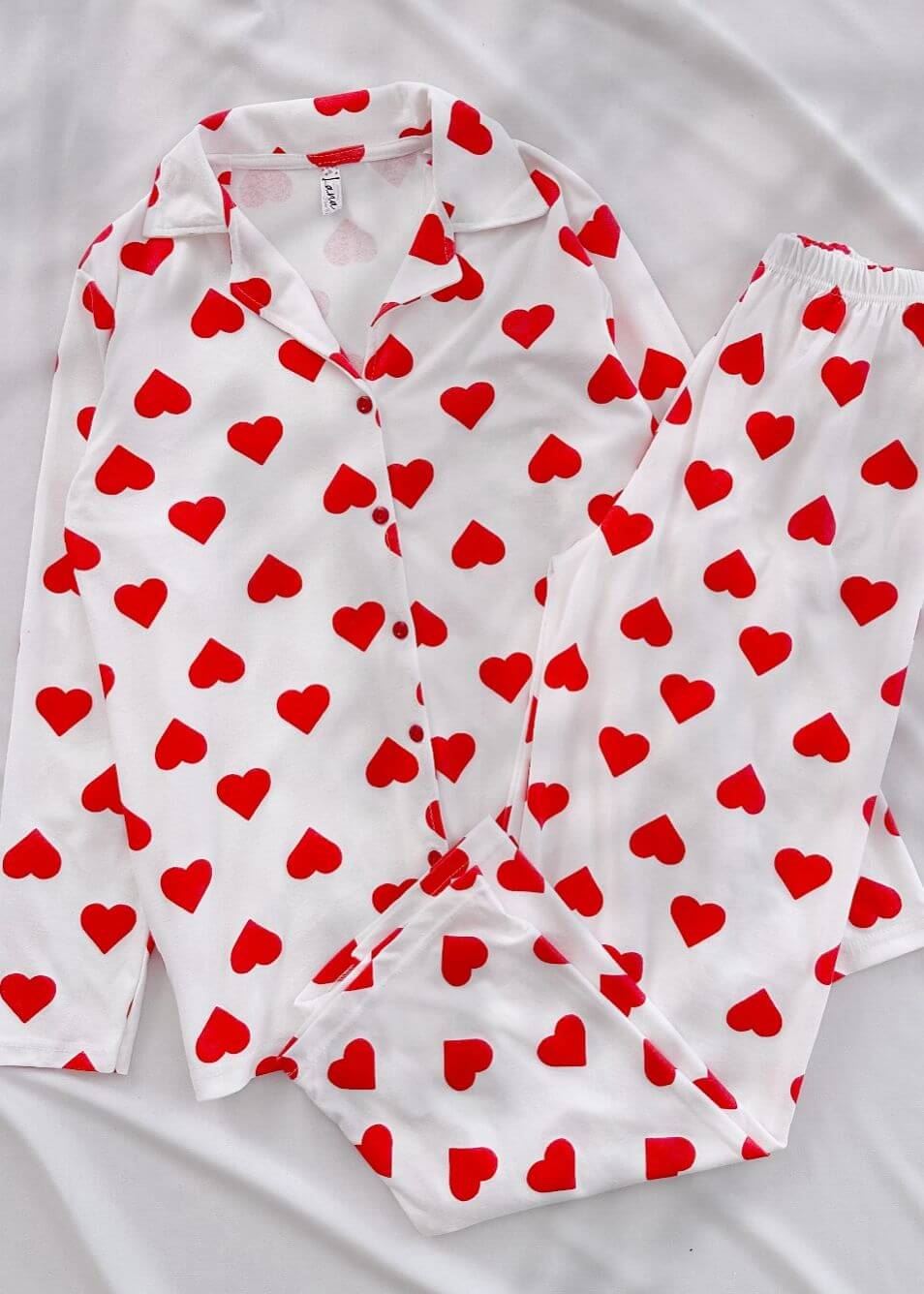 Beyaz Kalp Desen Pijama Takımı
