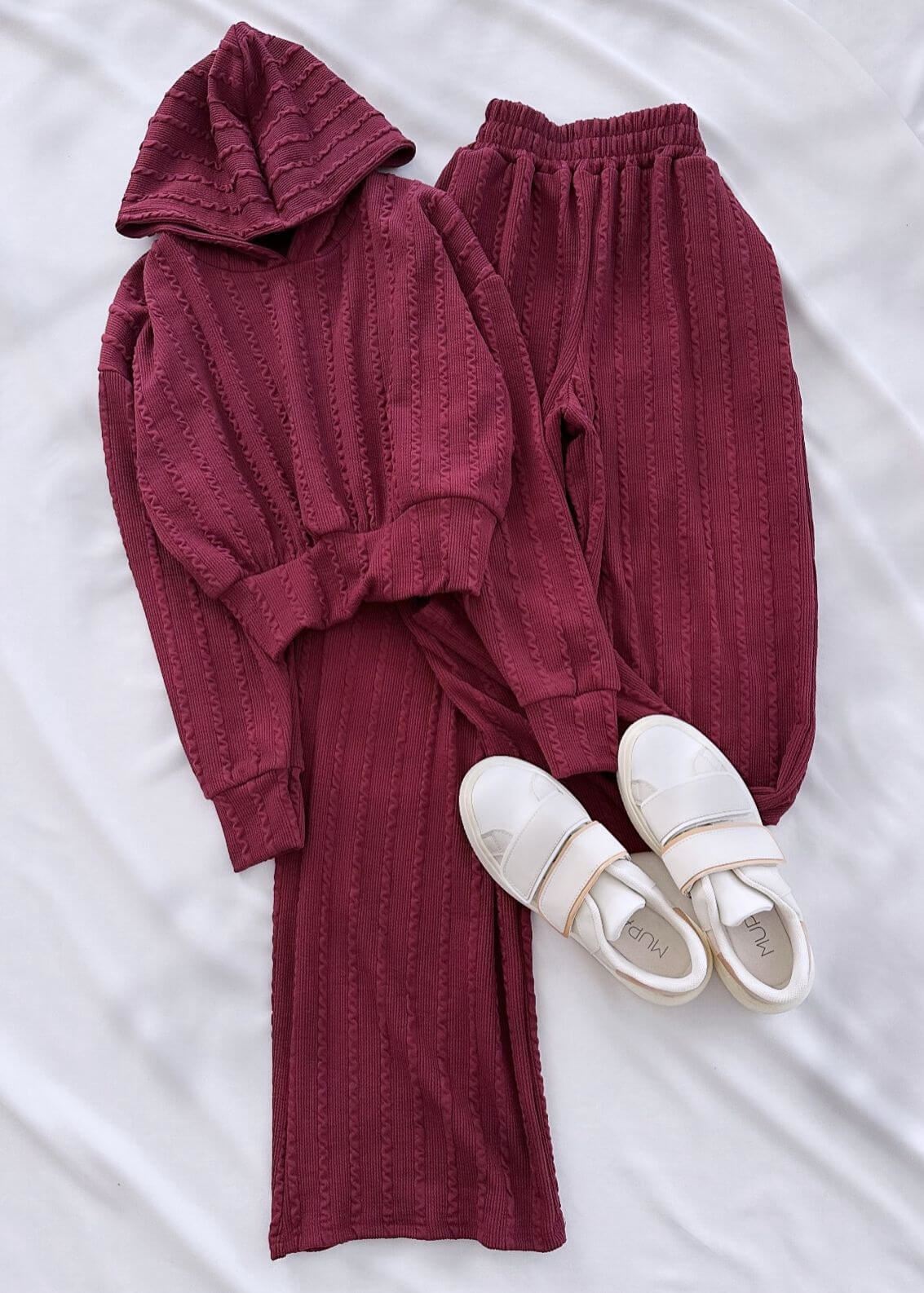 Bordo Burgu Kumaş Kapüşonlu Takım