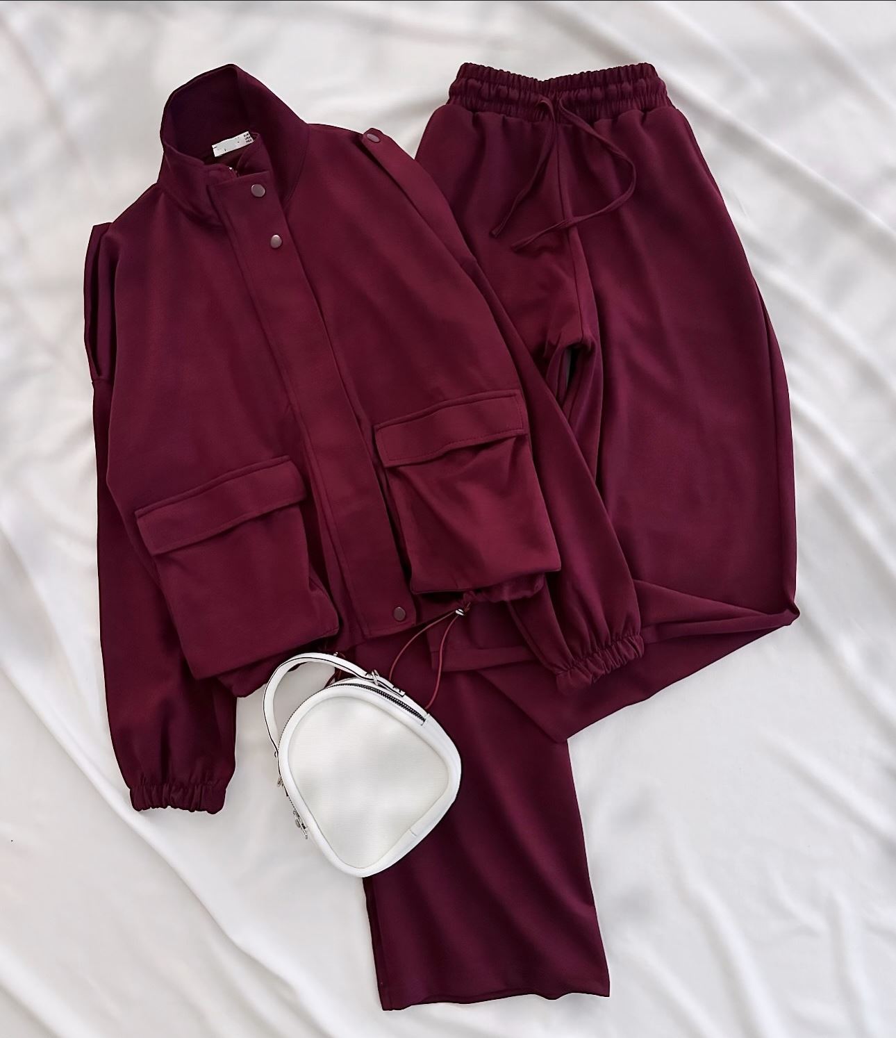 Bordo Selanik Kumaş Kapüşonlu Takım