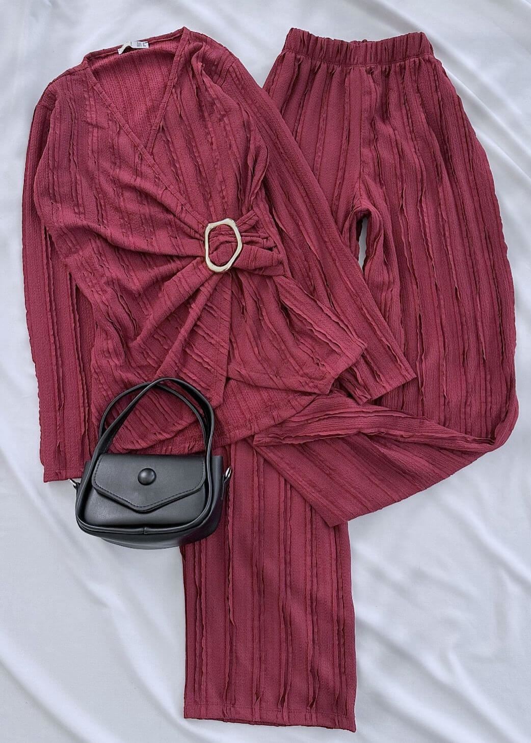 Kahverengi Dokulu Kapüşonlu Ceket Pantolon Takım