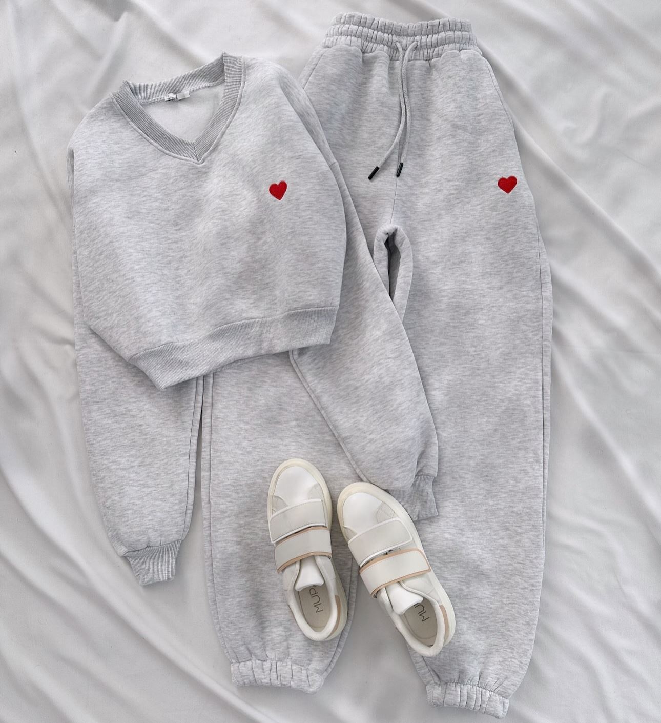 Gri Kalp Nakış Detay Eşofman Takımı