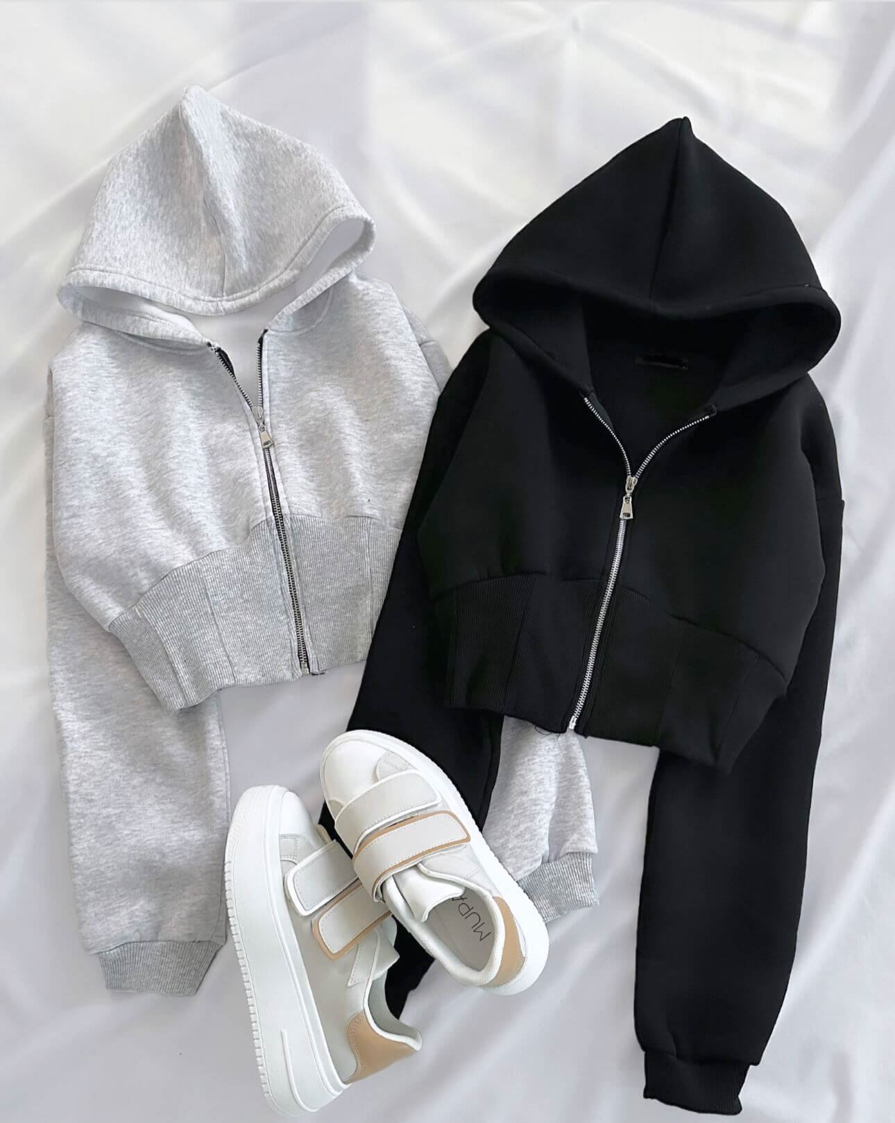 Siyah Kalp Detay Astarlı Peluş Ceket