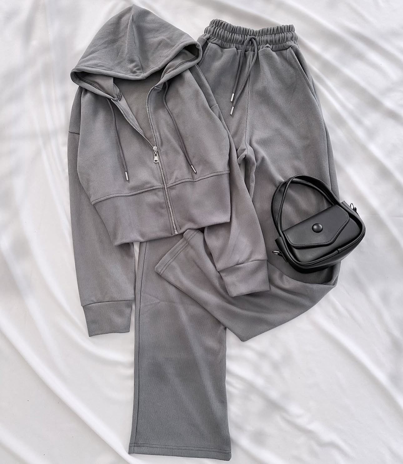 Siyah Burgu Kumaş Kapüşonlu Takım