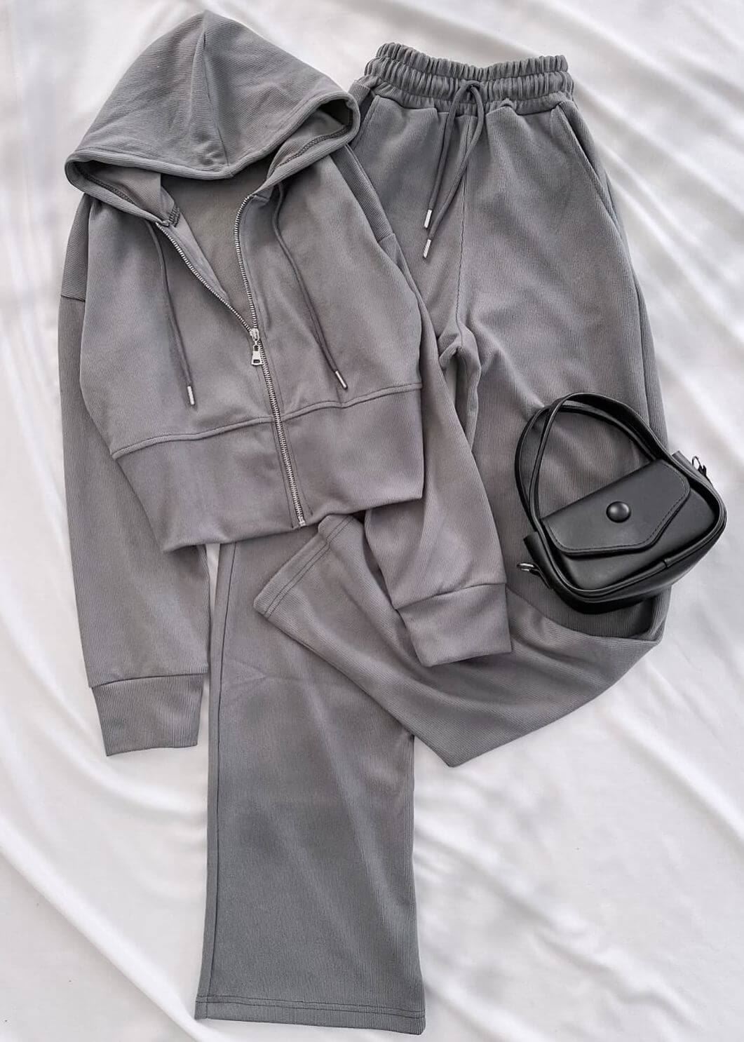 Koyu Gri Selanik Kumaş Kapüşonlu Takım