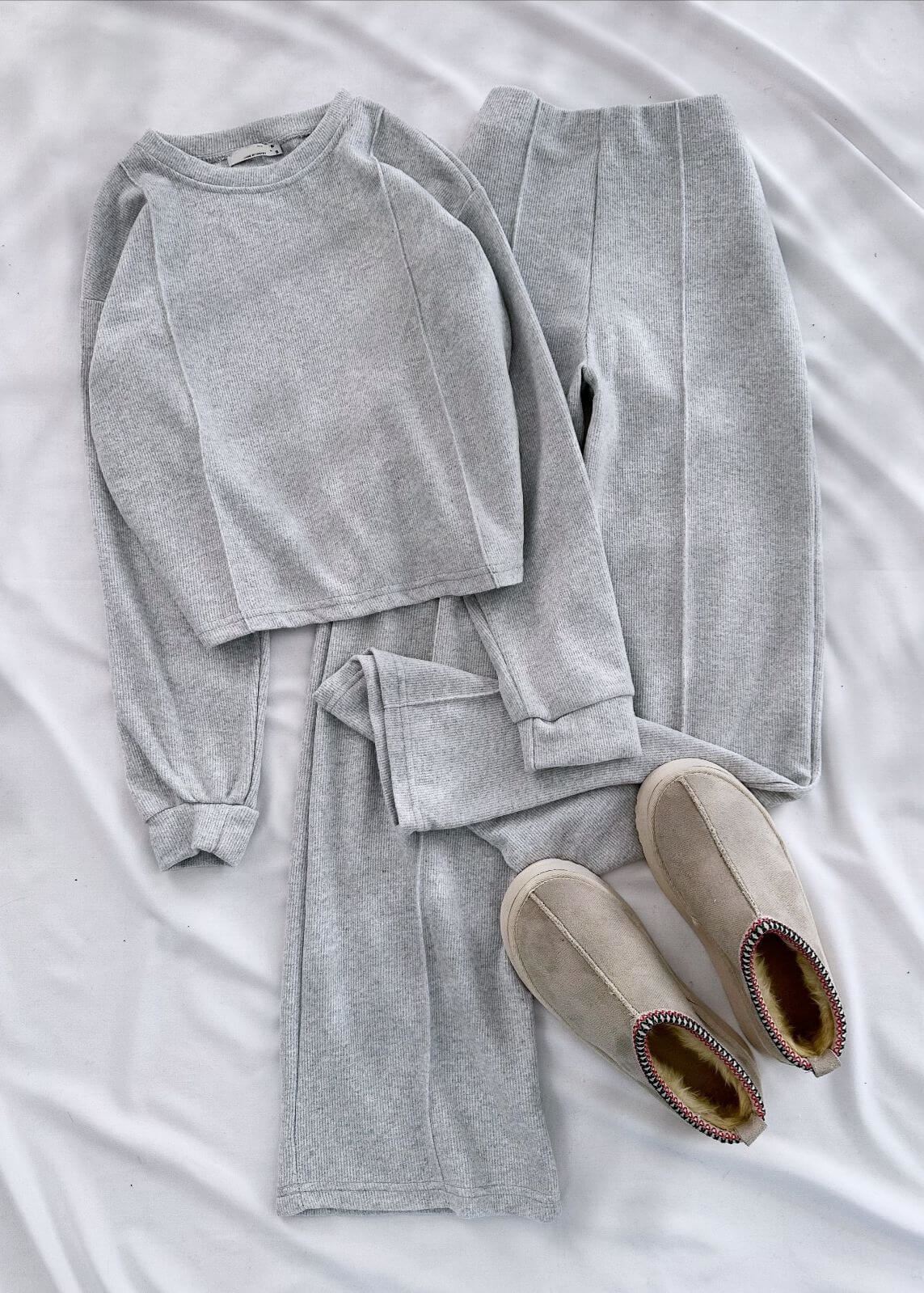 Antrasit Uzun Kol Düğme Detay V Bluz Pantolon Takım