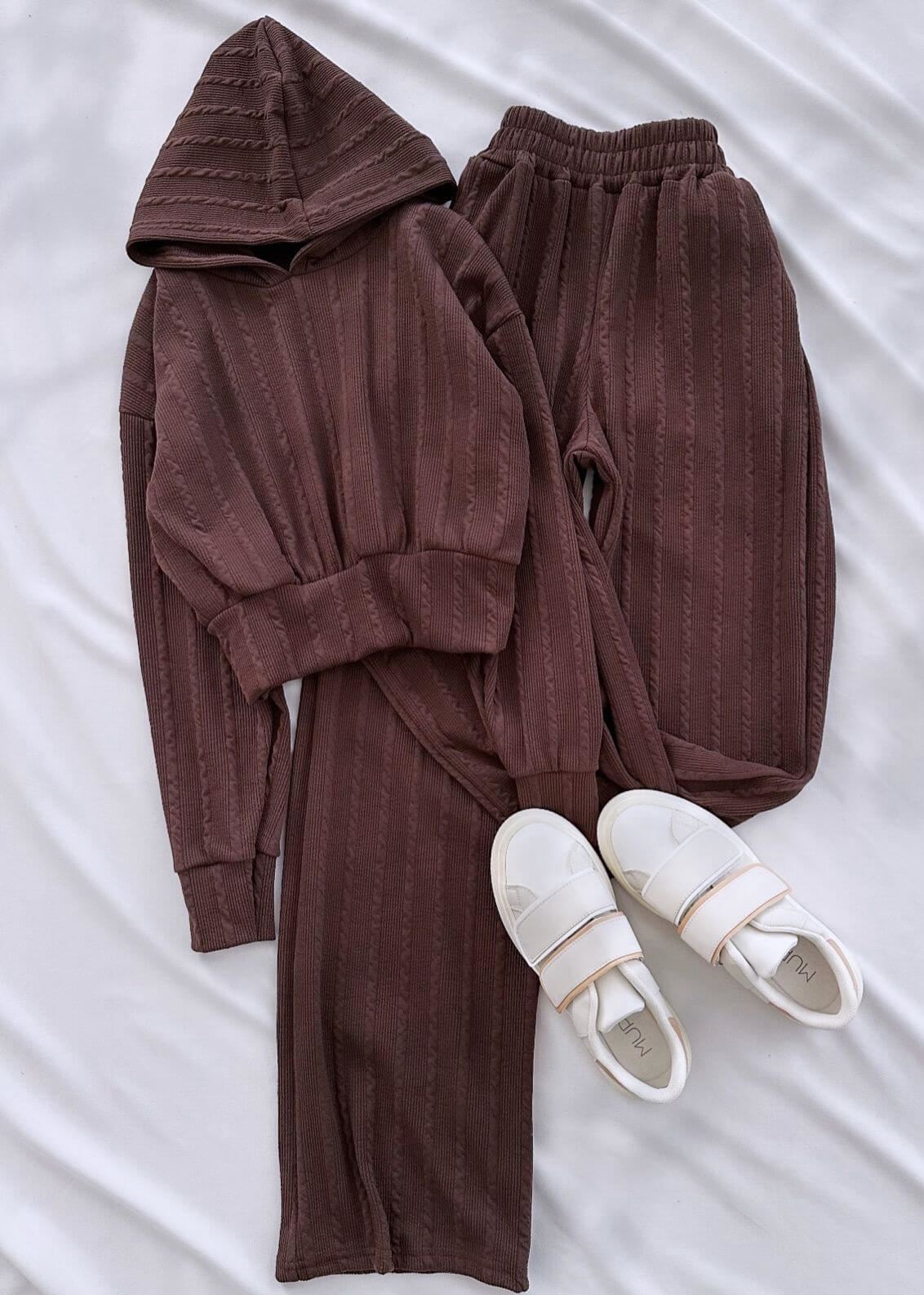 Kahverengi Burgu Kumaş Kapüşonlu Takım