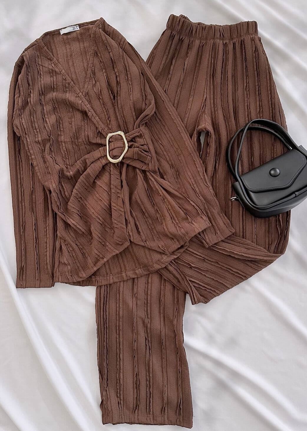 Lacivert Bubble Ön Büzgü Bluz Takım