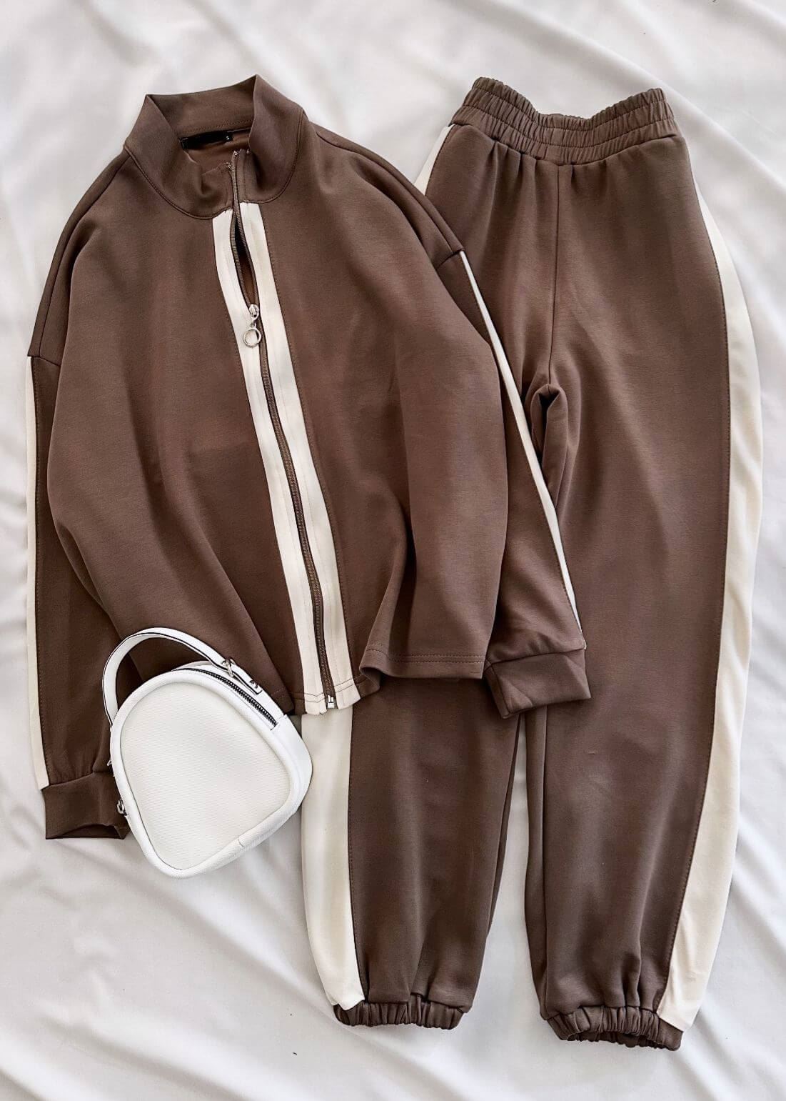 Kahverengi Kapüşonlu 3 İplik Sweat