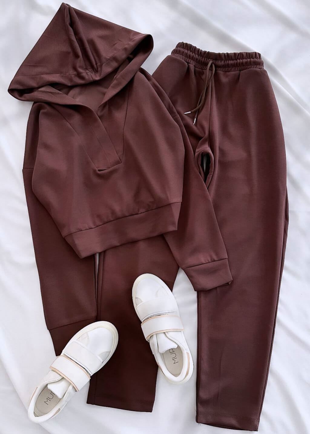 Kahverengi Oysh V Kapüşonlu Eşofman Takımı