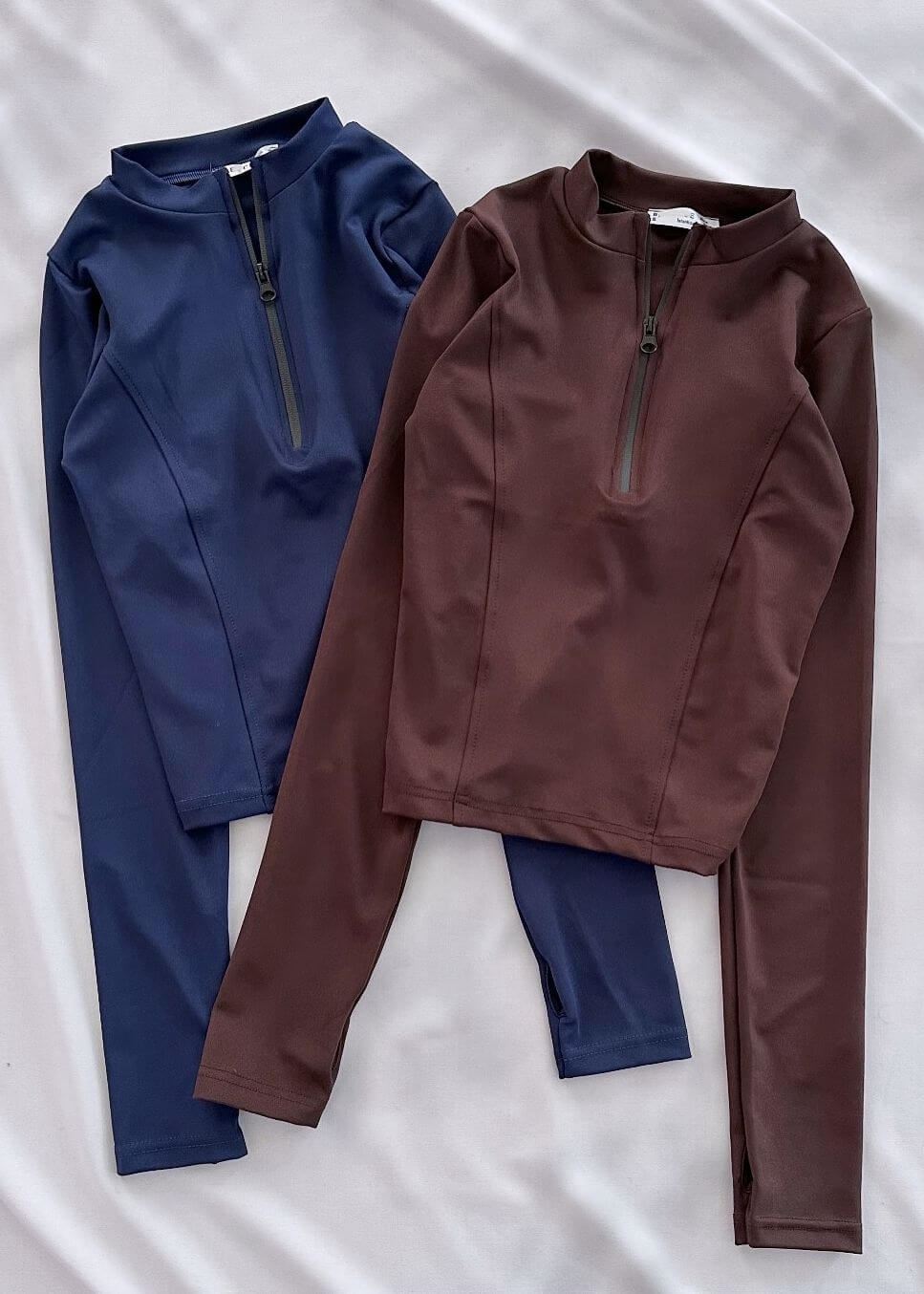 Kahverengi Parmak Geçme Detay Bluz