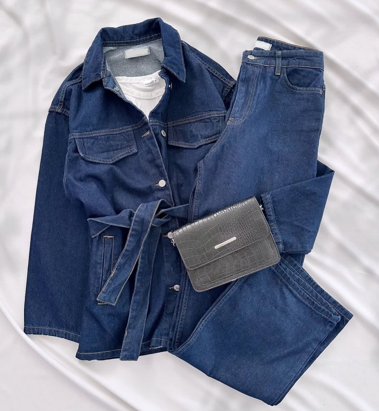 Siyah Uzun Kol Düğme Detay V Bluz Pantolon Takım
