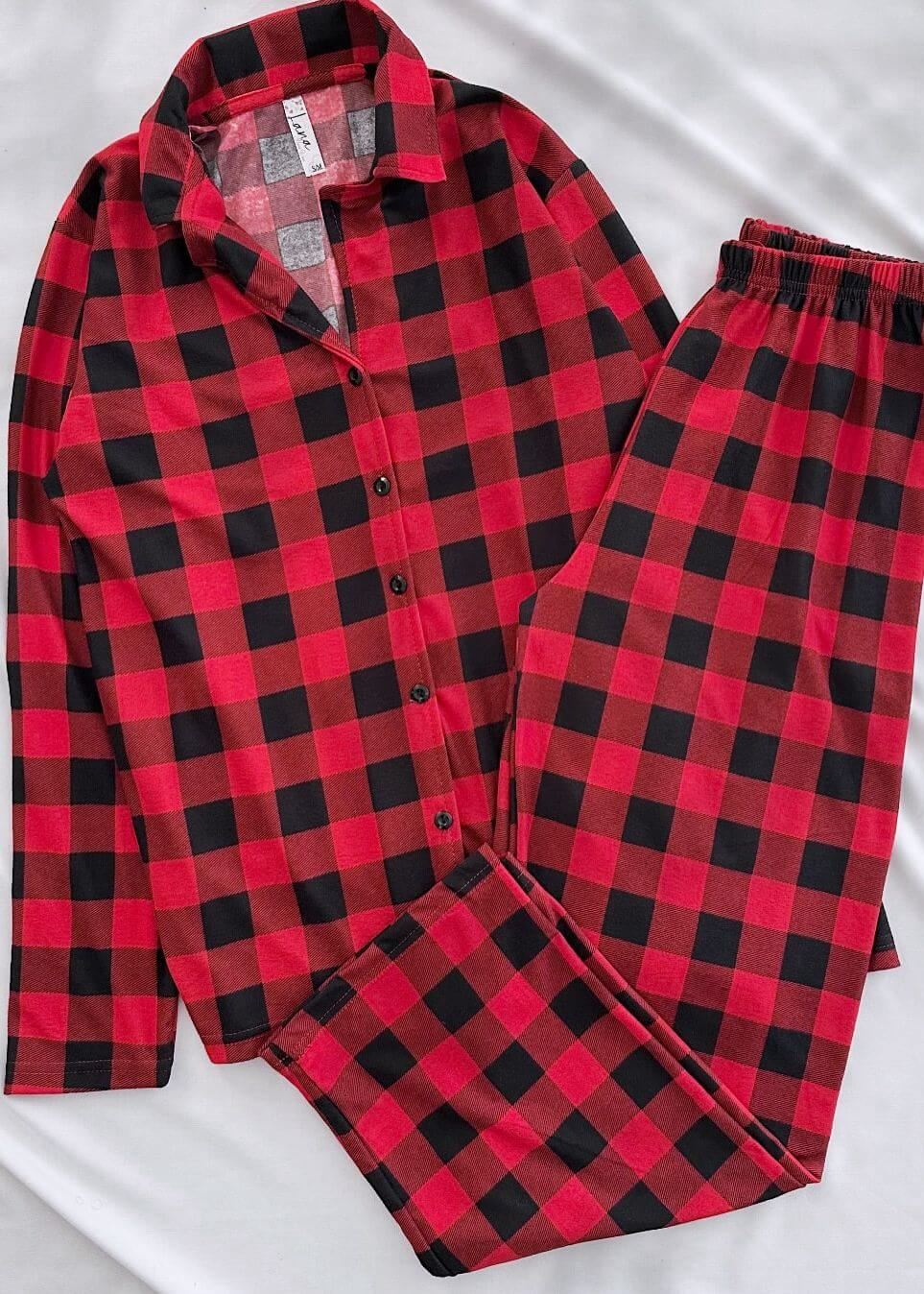 Kırmızı Ekose Desen Pijama Takımı