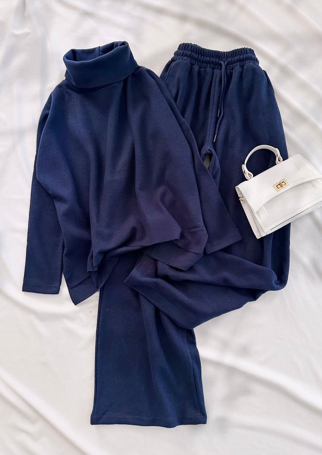 Mavi Selanik Kumaş Kapüşonlu Takım