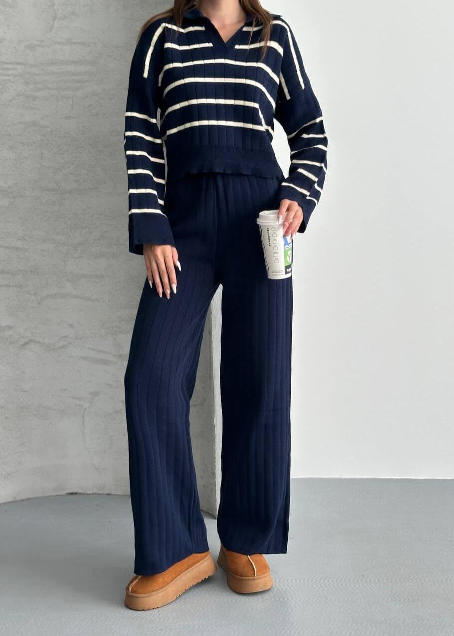 Lacivert Çizgili Polo Yaka Triko Takım