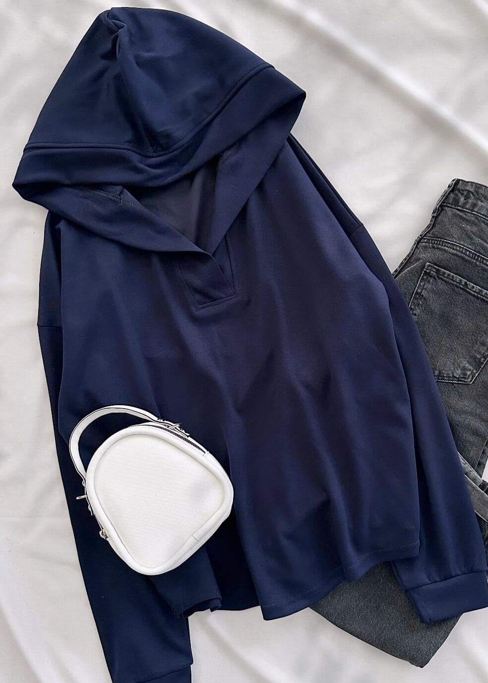 Lacivert Kapüşonlu Oysh Cepli Sweat