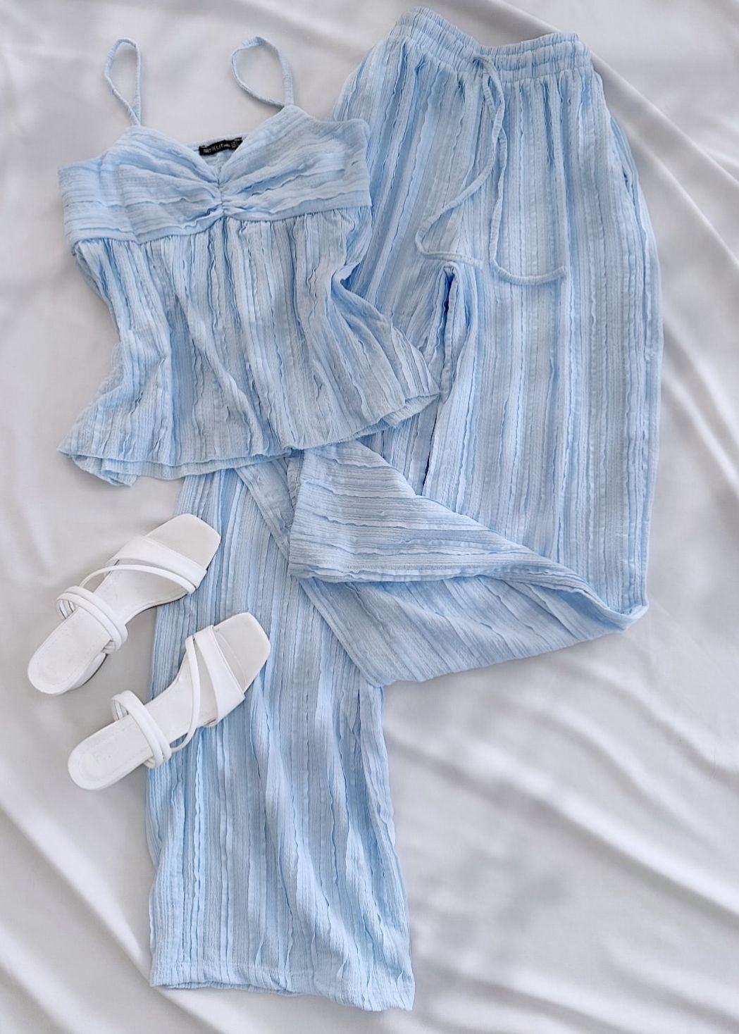 Pembe Boyun Bağlama Dokuma Pantolon Takım