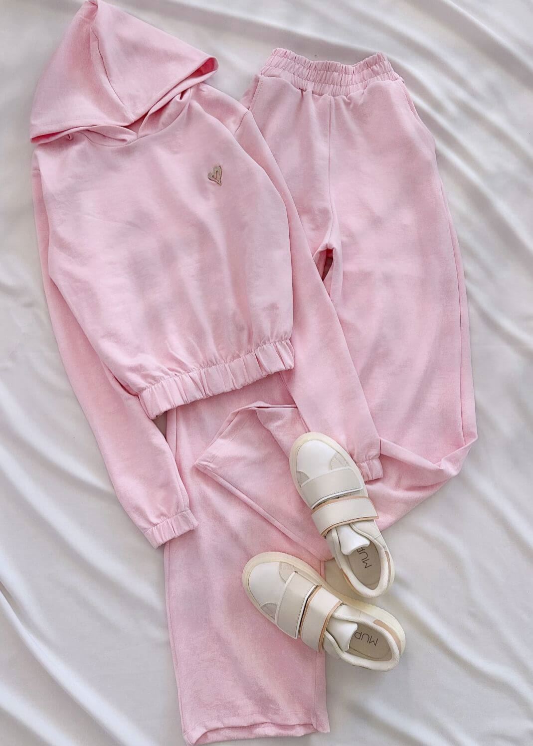 Pembe Bel Detay 3 İplik Eşofman Takımı