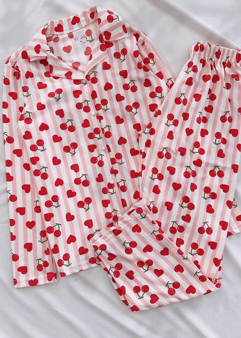 Pembe Kiraz Desen Pijama Takımı