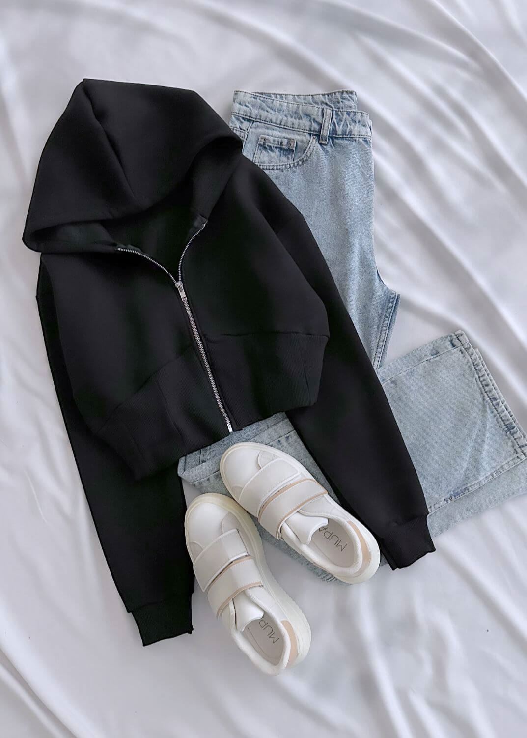 Beyaz Kalp Detay Astarlı Peluş Ceket