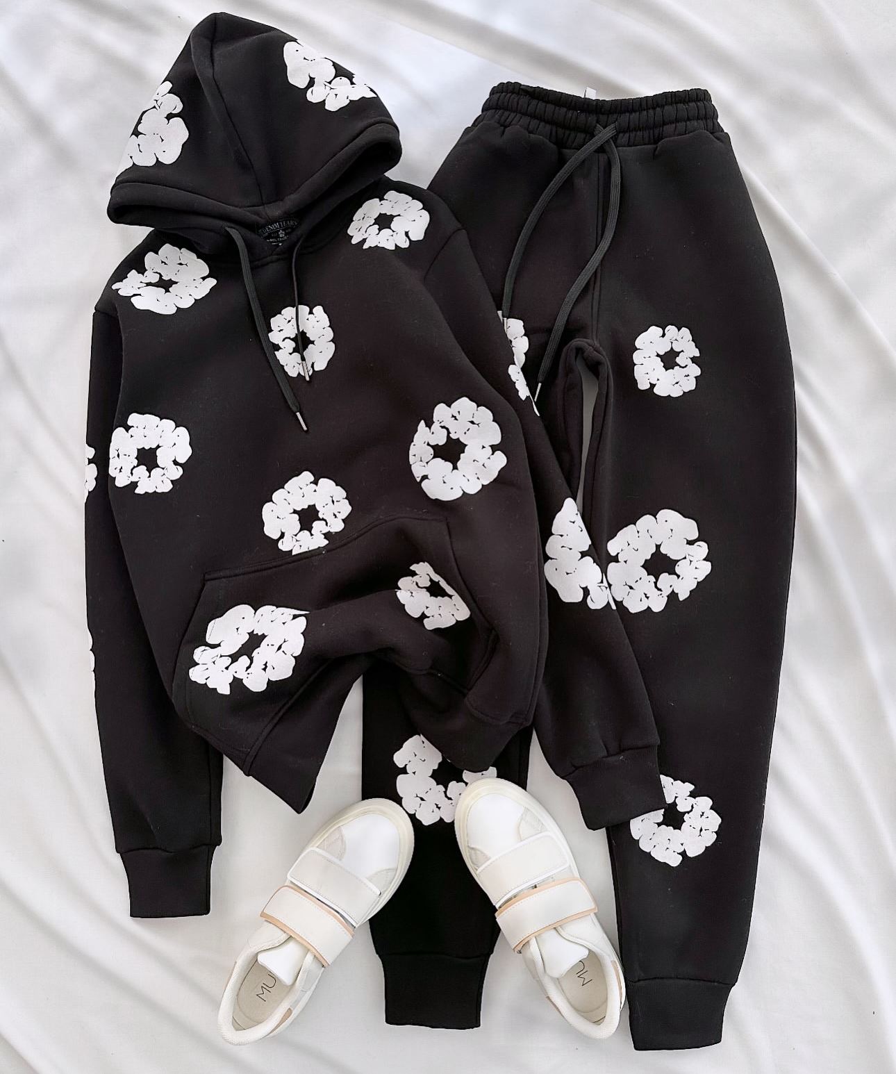 Siyah Papatya Baskı Eşofman Takımı