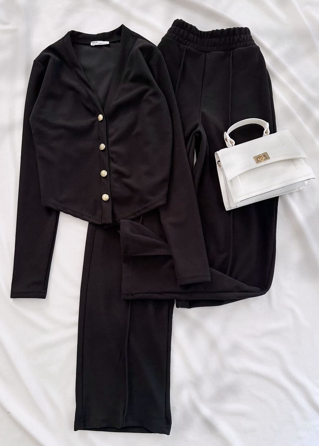 Bordo Uzun Kol Yan Büzgü Gofre Takım