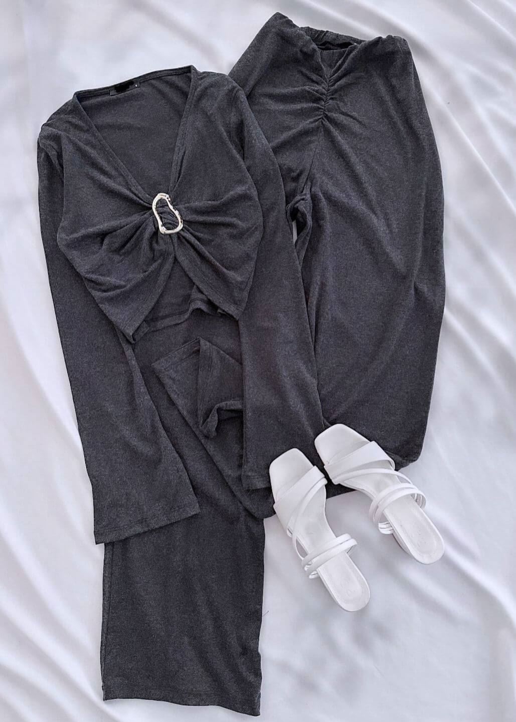 Yeşil Bubble Ön Büzgü Bluz Takım
