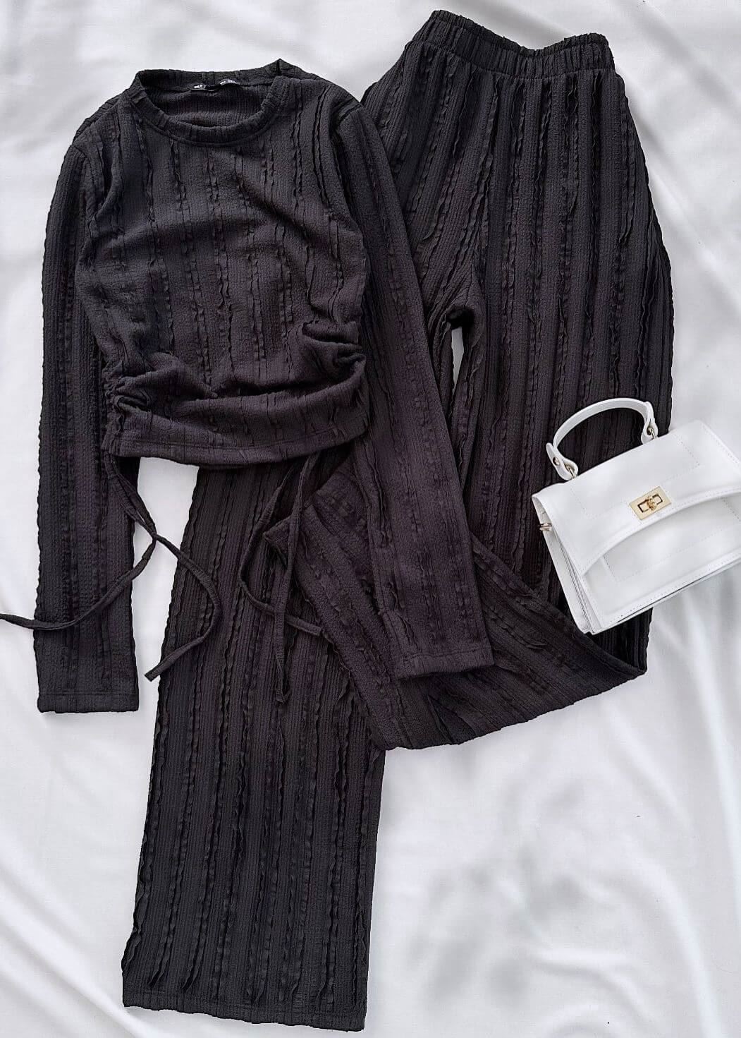 Mavi Çizgi Desen Gömlek Pantolon Takım