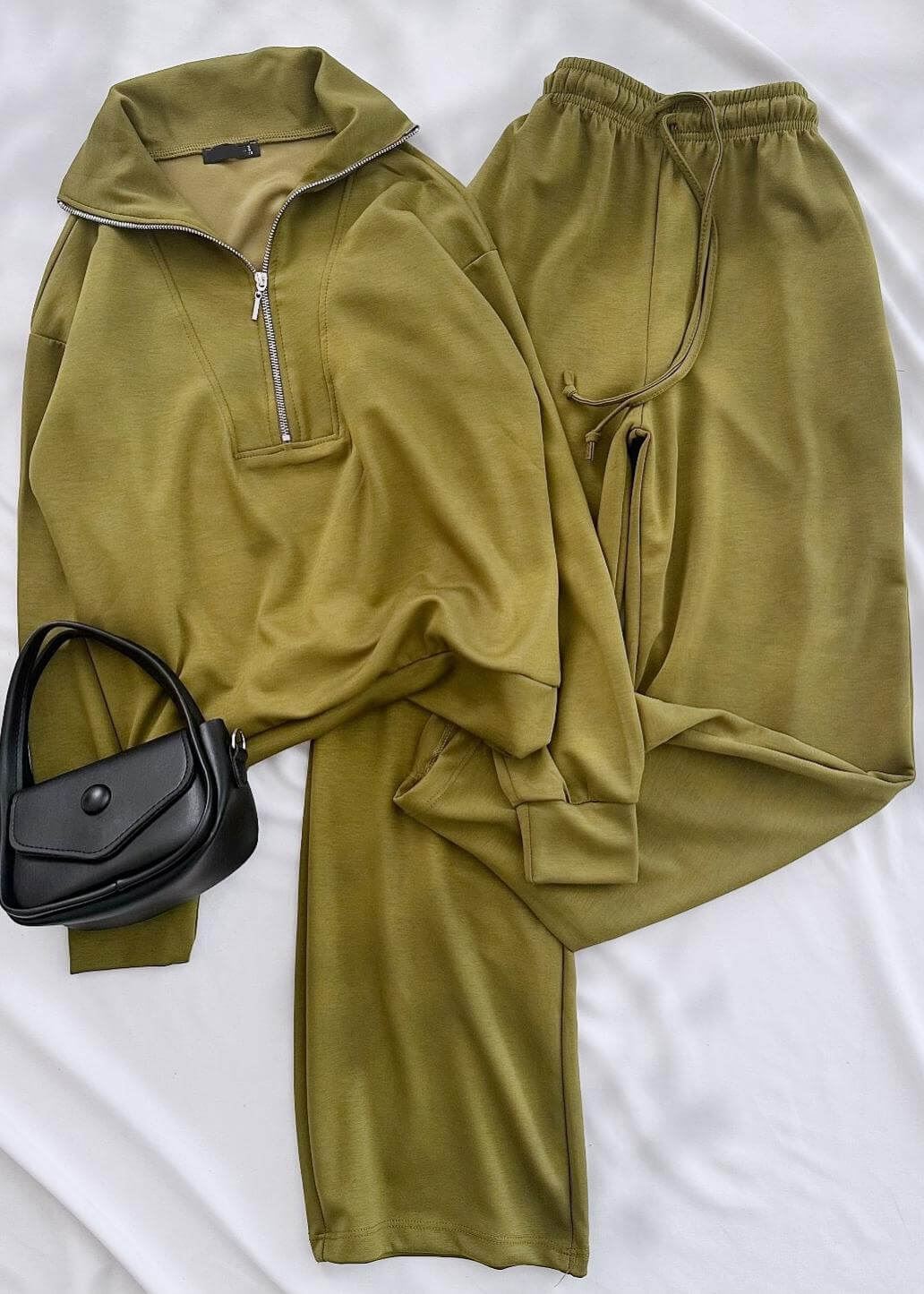 Yağ Yeşili Fermuar Detay Modal Kumaş Takım