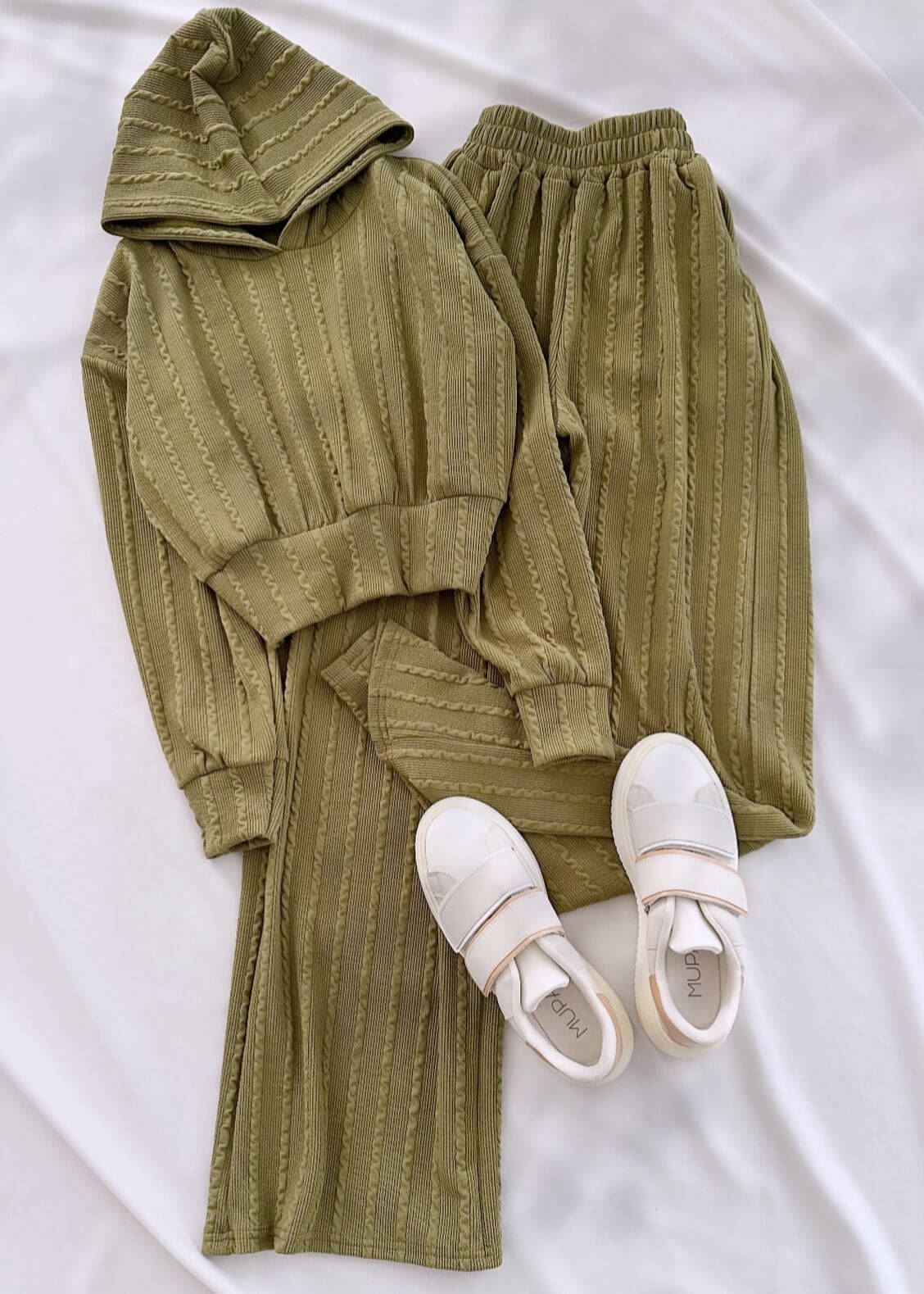 Yeşil Burgu Kumaş Kapüşonlu Takım