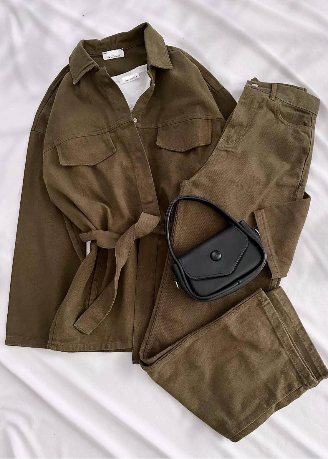 Siyah Dokulu Gofre Kumaş Pantolon Takım